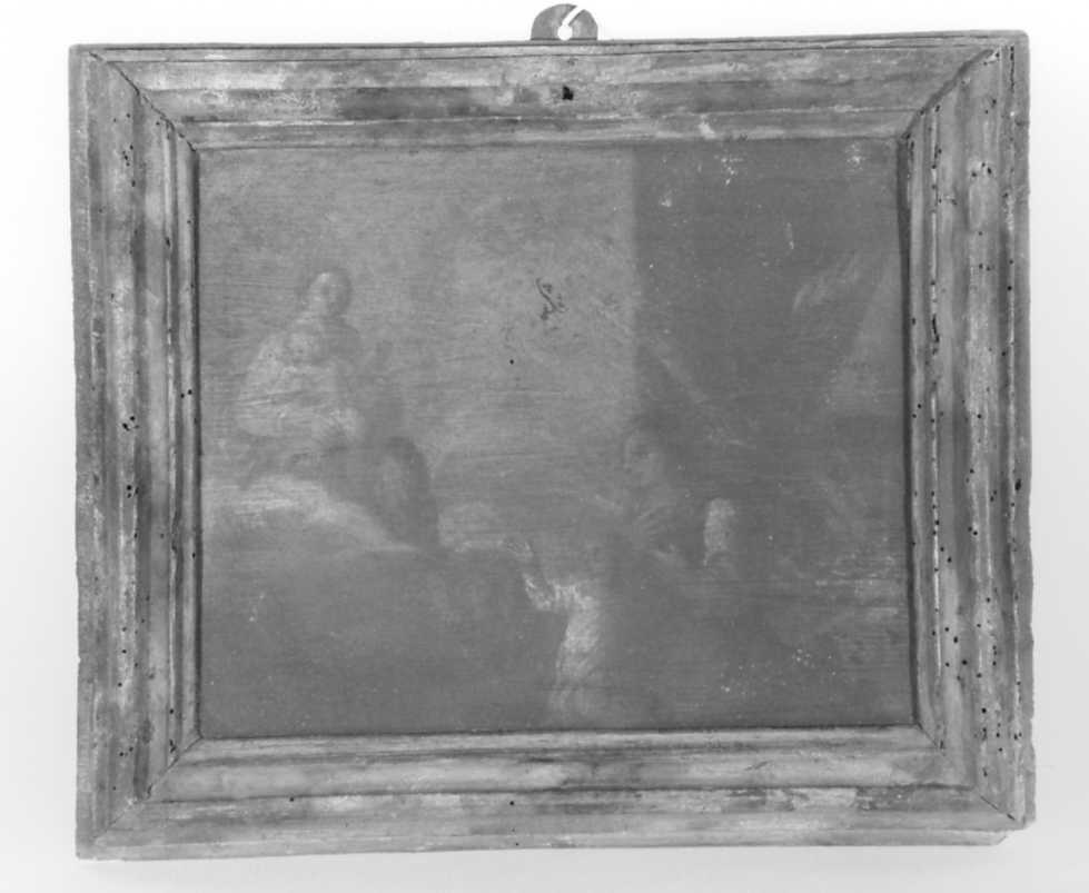 Sul lato destro, due oranti. Sul lato sinistro, la Madonna del Fuoco assisa sopra una nuvola