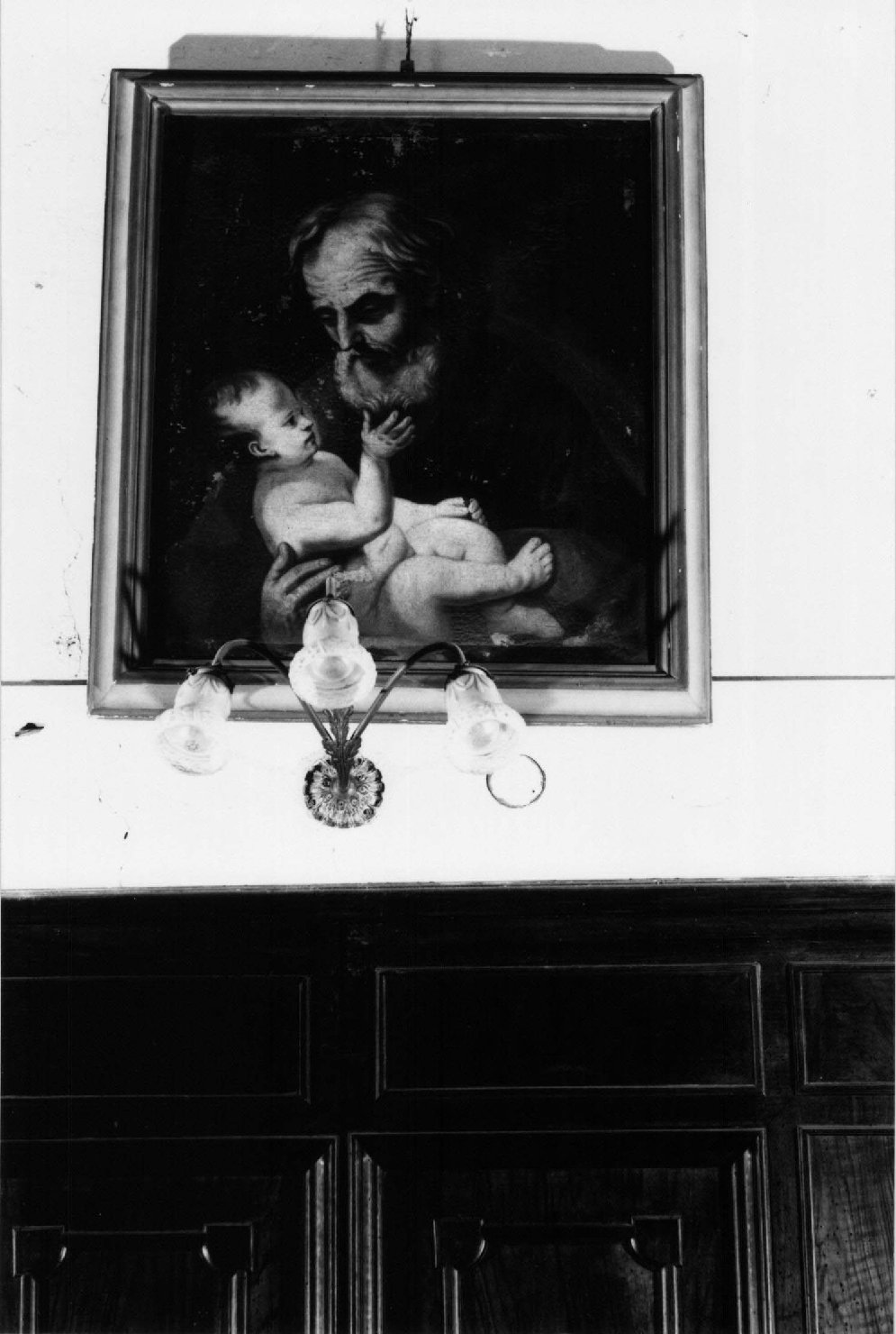 San Giuseppe, ritratto come uomo anziano, stempiato, la barba bianca, regge fra le braccia il Bambino semisdraiato che con la mano destra gli accarezza la barba