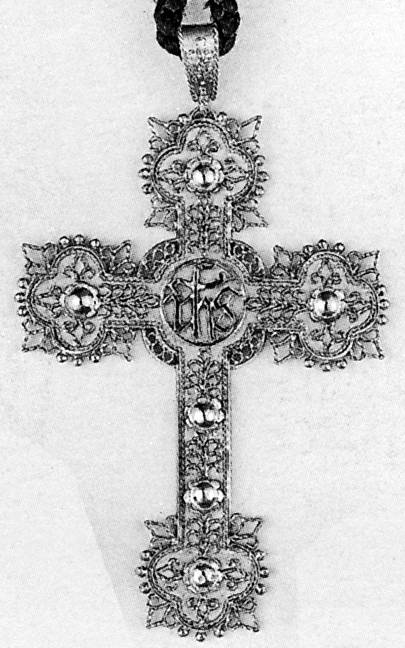 Croce pettorale. La croce presenta riporti in lamina sbalzata