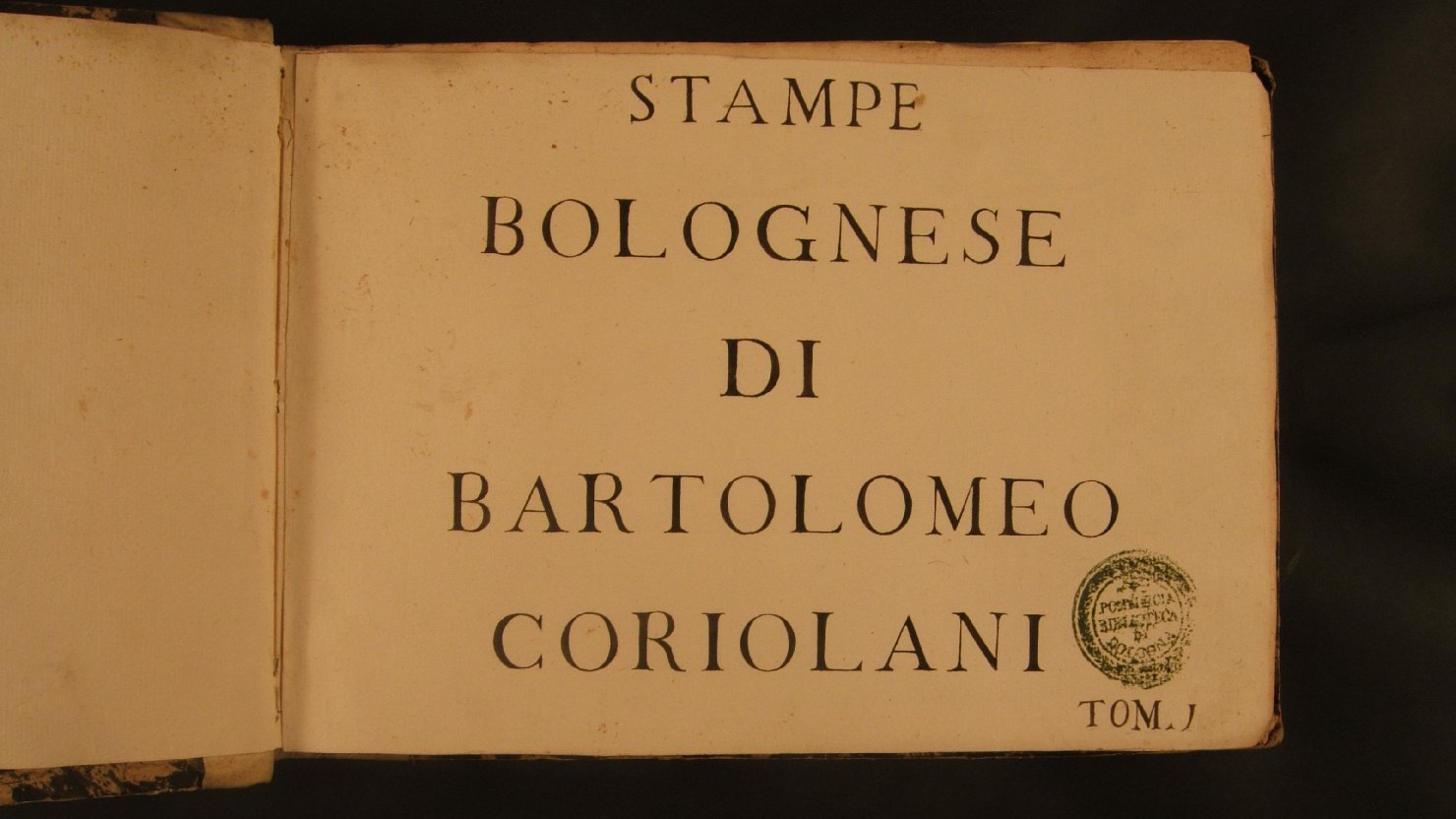 Frontespizio vol. 091: "Stampe bolognese (sic) di Bartolomeo Coriolani TOM. J.". libri
