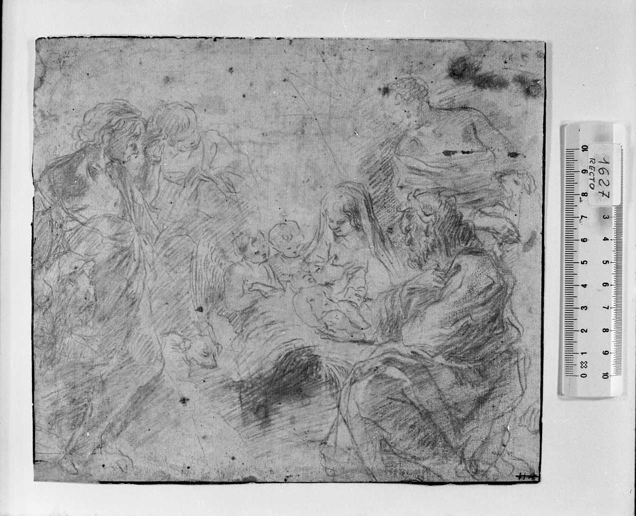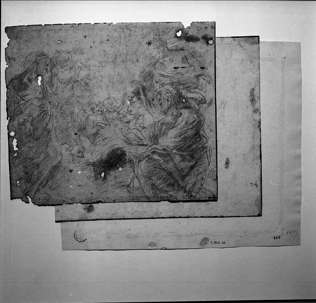 Disegno a sanguigna rappresentante l'adorazione del Bambino (r.) e uno studio per la figura di S.Giuseppe (v.)