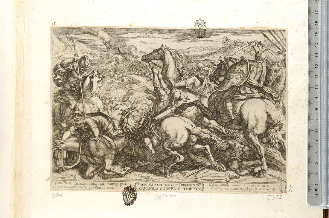 - NOTIZIE STORICO CRITICHE Da una serie di 24 stampe rappresentanti battaglie (eccetto una) dell'Antico Testamento. La serie originale è di 25 stampe, manca alla Pinacoteca Nazionale di Bologna l'ultimo foglio. La serie è stata eseguita a Roma nel 1613 (data riportata sul frontespizio)