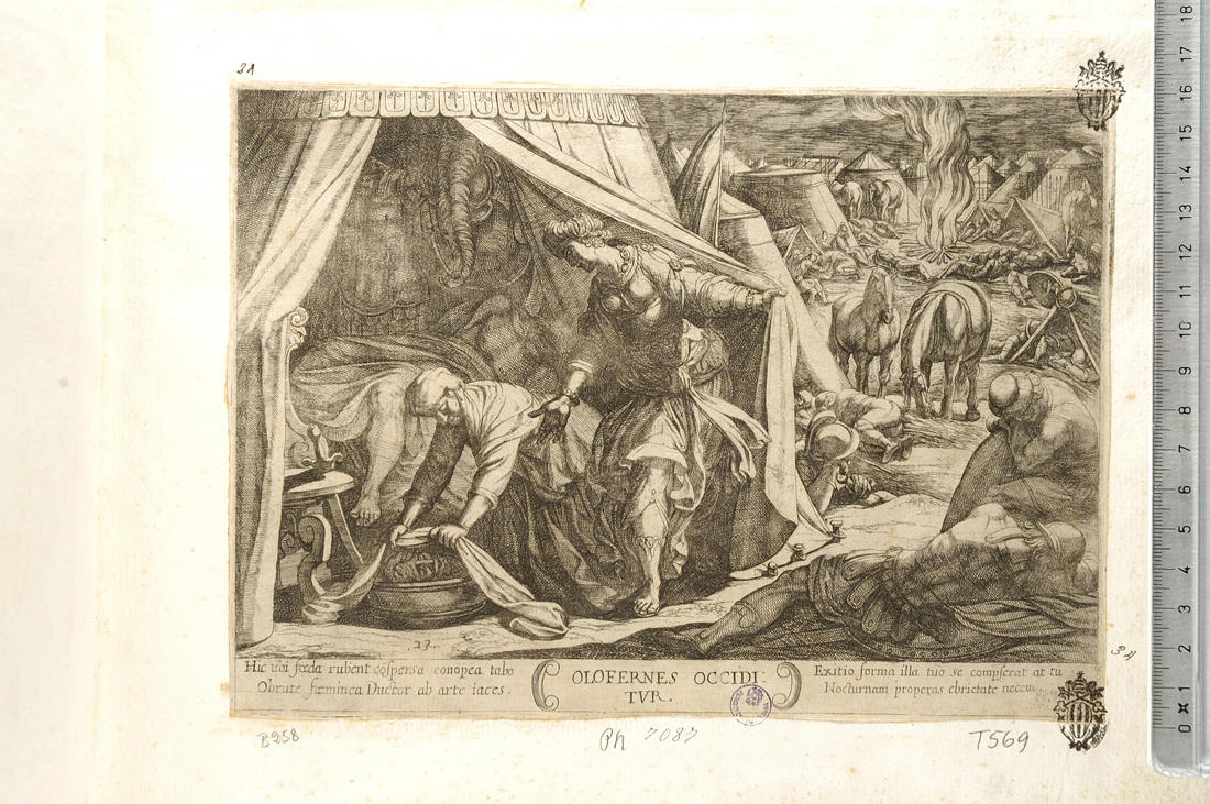 - NOTIZIE STORICO CRITICHE Da una serie di 24 stampe rappresentanti battaglie (eccetto una) dell'Antico Testamento. La serie originale è di 25 stampe, manca alla Pinacoteca Nazionale di Bologna l'ultimo foglio. La serie è stata eseguita a Roma nel 1613 (data riportata sul frontespizio)