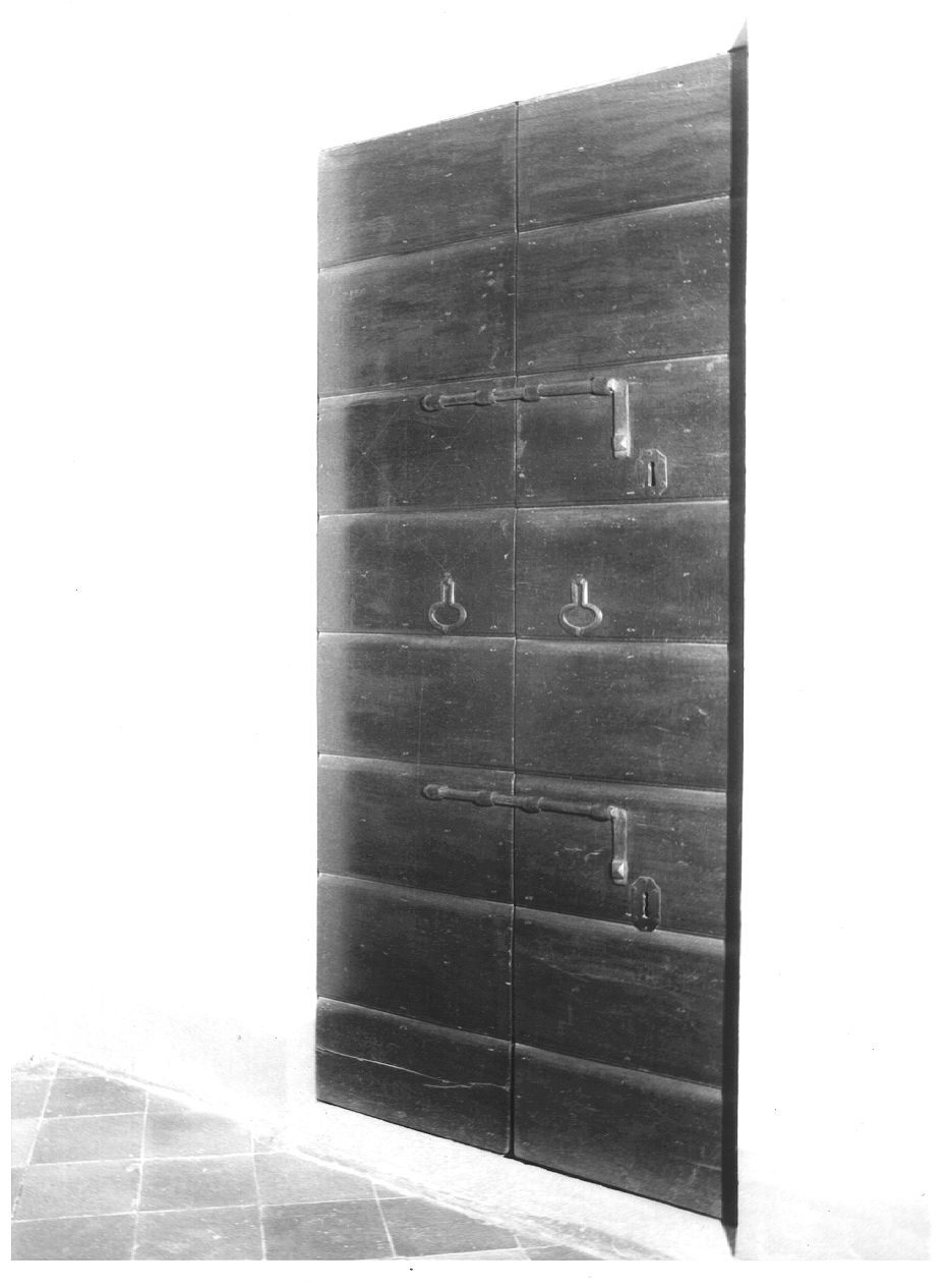 Serie di tre porte a due battenti con chiavistelli, serrature e pendenti in ferro dell'epoca