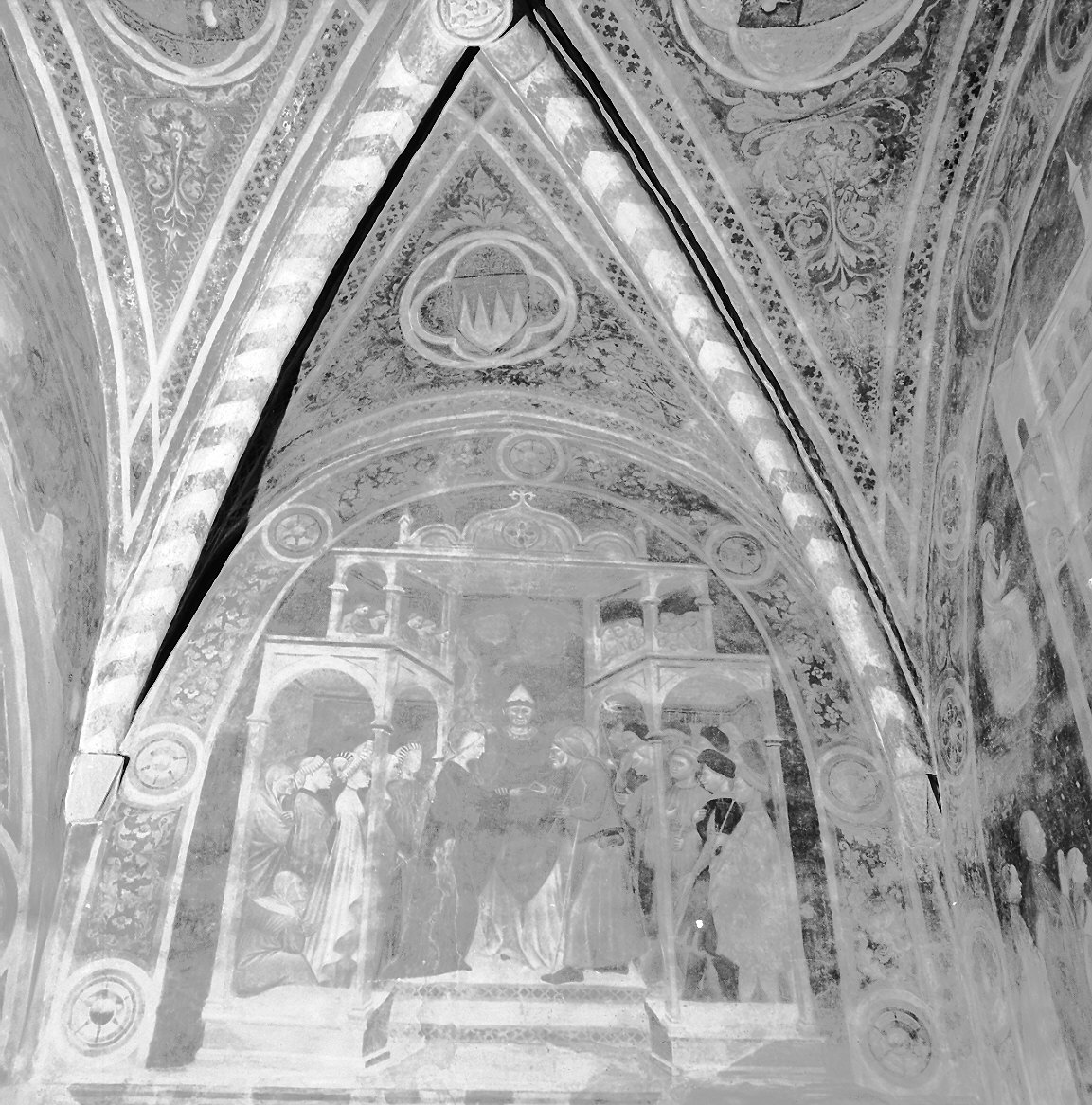 Spazio suddiviso in due ambienti in cui è rappresentato un ciclo mariano ispirato ai Vangeli apocrifi. Sullo sfondo è rappresentata un'Annunciazione, preceduta da un soffitto decorato. Si ripete lo stemma della famiglia Ravacaldi. Si narrano inoltre le scene delle Natività di Maria con la sua presentazione al tempio; il matrimonio con Giuseppe e la nascita di Cristo
