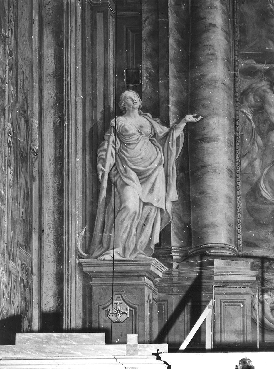Allegorie-simboli: Fede; Speranza. Attributi: (Fede) calice. Attributi: (Speranza) ancora. Decorazioni: colonne; pilastri; basamenti