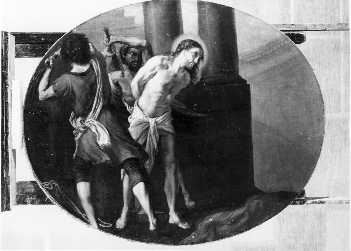 - NOTIZIE STORICO CRITICHE E' molto evidente in questa tela il valore retorico del discorso di Callani:attraverso l'artificio,prettamente retorico appunto,del contrasto tra la figura del Cristo(pura,idealizzata,che recupera tutta una tradizione di rappresentazione del Cristo sofferente),e le figure dei due carnefici(rappresentati con abiti laceri,volti crudeli e quasi deformi,con un'insistita descrizione anatomica che vuole dare l'impressione della crudele violenza della loro azione),Callani riesce a coinvolgere e convincere chi guarda della superiorità umana e divina della religione cattolica