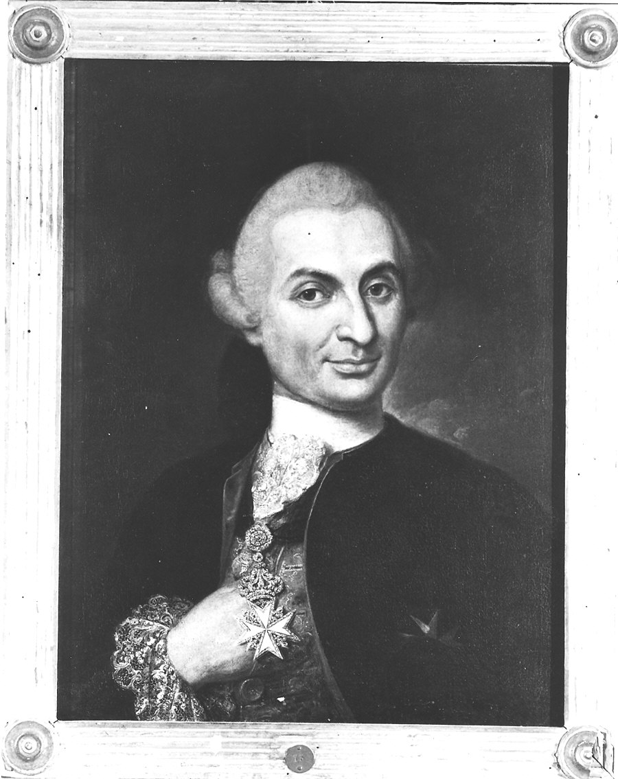 Personaggi: Mandelli Nicolò. Abbigliamento: giacca; trine; parrucca bianca. Araldica: croce di Malta