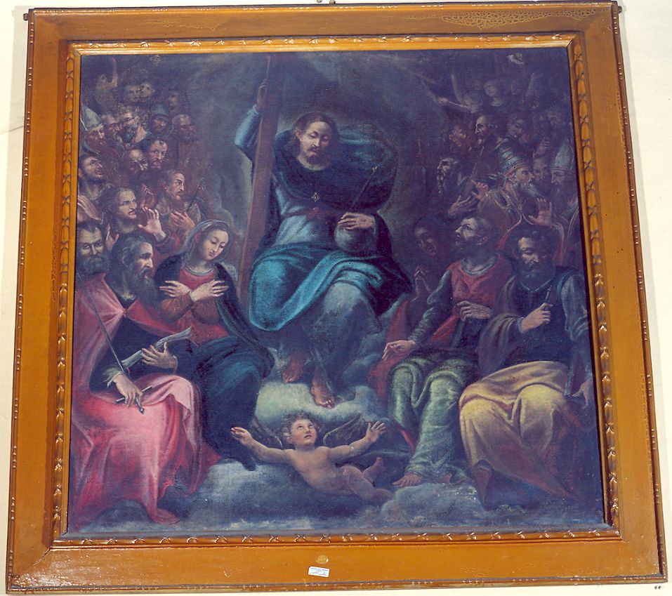 - NOTIZIE STORICO CRITICHE La struttura compositiva con Cristo in posizione centrale circondato dalla gloria dei Santi permette di inserire la tela nella produzione emiliana del periodo tra Cinque e Seicento. La cornice dorata è ottocentesca