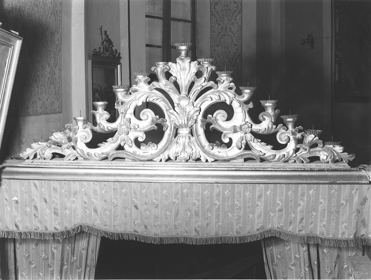 E' costituito da 15 bracci reggicandele a volute, decorati da foglie d'acanto e raccordati due a due, ad eccezione dei tre bracci centrali. Due grandi foglie d'acanto collegano il tutto