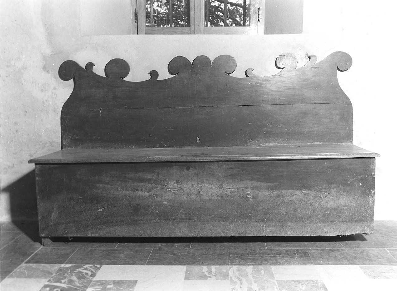 - NOTIZIE STORICO CRITICHE Le cassapanche, che fungono da coro, sono un esempio del prototipo arcaico del divano. Originali solo in parte, dal momento che il settore superiore dello schienale è opera di restauro successivo, eseguito insieme agli scanni del presbiterio (cfr, scheda 00151235)