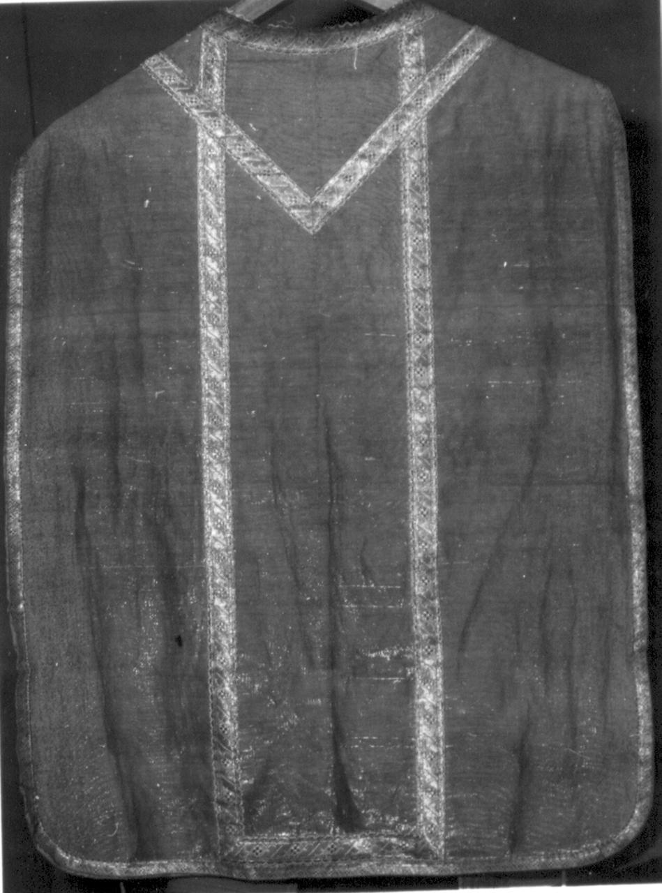 - NOTIZIE STORICO CRITICHE I tessuti laminati, impiegati con frequenza nei paramenti liturgici per il loro effetto di ricchezza, mancano di elementi figurativi utili per la loro datazione. In questo caso è l'osservazione delle materie impiegate e il corredo di galloni a suggerire il sec. XIX