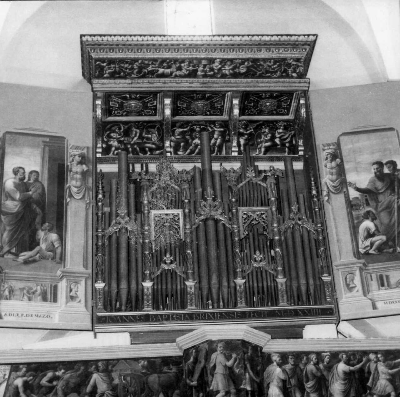 - NOTIZIE STORICO CRITICHE Nell'anno 1524 fu terminata la "fabbrica che sostiene l'organo" nella quale fu collocato il nuovo organo costruito da G. B. Facchetti. I Taraschi furono incaricati della decorazione pittorica