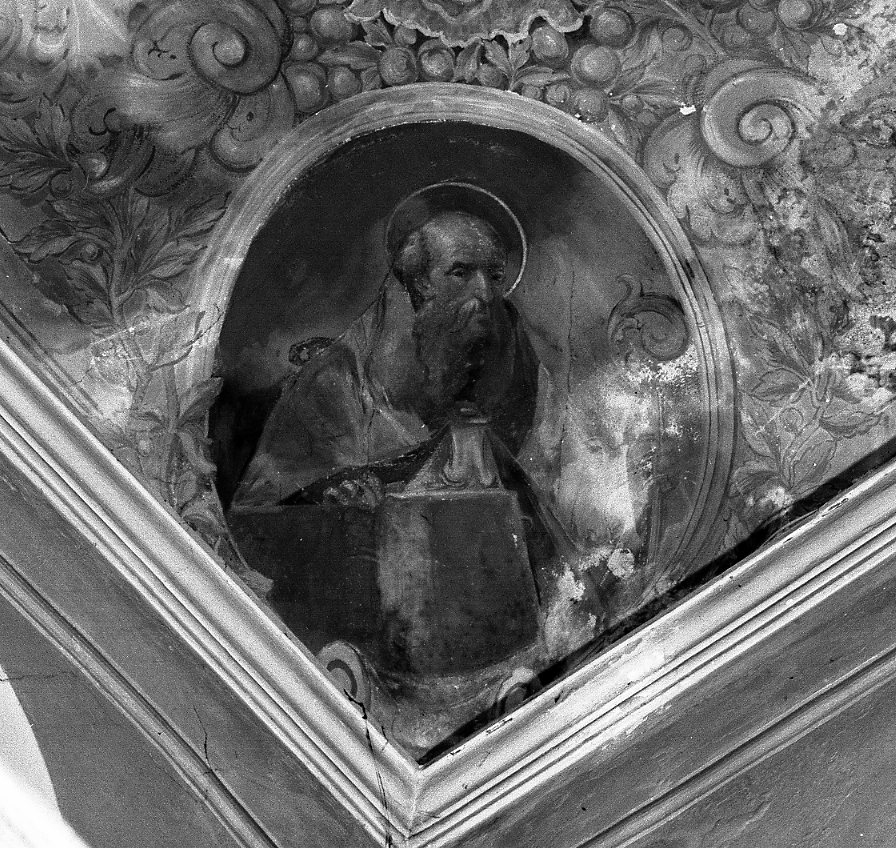 - NOTIZIE STORICO CRITICHE Lo stato di conservazione non permette una lettura iconografica precisa. Il Santo è comunque uno dei quattro Dottori della Chiesa, con molta probabilità S. Agostino