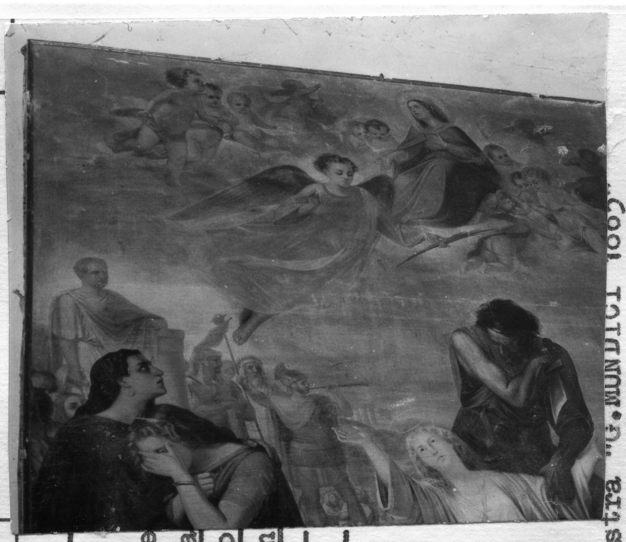 - NOTIZIE STORICO CRITICHE Il dipinto è caratteristico del modenese Geminiano Mundici, appartenente alla corrente accademica e neoclassica di impronta malatestiana. La composizione troppo elaborata è fredda e compassata. E' citato come esistente nella vecchia chiesa da Chellini-Pancaldi, 1926, p. 188