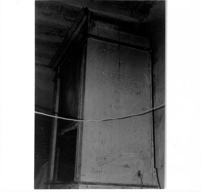 - ISCRIZIONI sotto il crivello - "Fu ripulito/ ed accordato/ con riparazioni ai/ mantici e canne di/ legno da Battani/ Antonio di Prassi/ noro, 2à gennaio/ 1898/ A.M.D.G.B.M.V.O.S." - a matita -