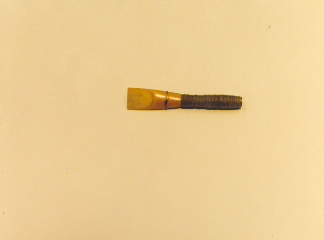 Le ancie sono conservate dentro scatoline nel sottofondo di una custodia in legno per clarinetto