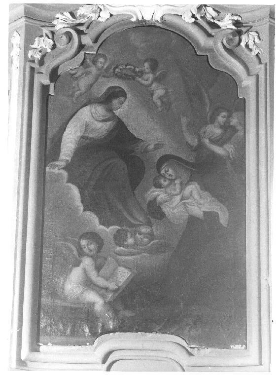 - NOTIZIE STORICO CRITICHE Opera di un mediocre pittore emiliano del XVIII secolo, il dipinto è copia piuttosto fiacca e di dimensioni minori di una tela di Marcantonio Franceschini che si trova a Bologna, nella chiesa di S. Caterina, a lato del presbiterio