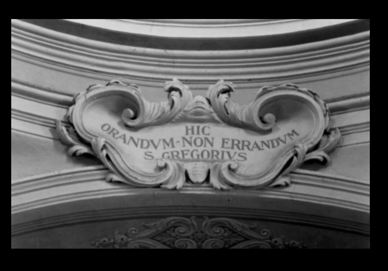 - ISCRIZIONI cartiglio - HIC/ ORANDUM-NON-ERRANDUM/ S. GREGORIUM - lettere capitali - a pennello -