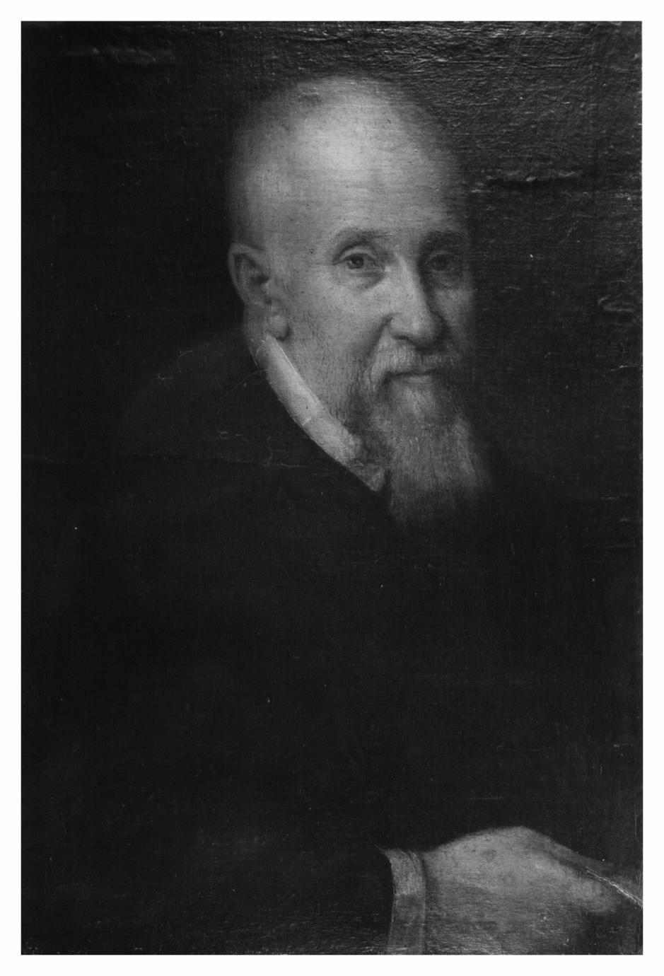 - NOTIZIE STORICO CRITICHE Acquisito dal museo con l'attribuzione a scuola fiorentina, è stato riferito ad ambito emiliano dal Pallucchini (1945). Pubblicato da Ghiraldi (1990) come probabile opera di Cesare Aretusi, il dipinto, nonostante una certa acutezza, non sembra avere la stessa qualità pittorica del "Cesare I d'Este" esposto in Galleria, né trova confronti negli astanti del "Miracolo di Sab Gregorio Magno" in cui il pittore bolognese dà prova delle sue capacità ritrattistiche. L'opera, che per fattura può ascriversi ad ambito emiliano, va datato intorno alla fine del Cinquecento per la foggia dell'abito: il colore scuro e lo stretto colletto bianco, ancora lontano dalle ricche gorgiere seicentesche, rimandano piuttosto alla cultura controriformista. Attualmente la tela è sottoposta ad un intervento di consolidamento della pellicola pittorica, localizzato in quattro punti sullo sfondo e in corrispondenza dell'abito dell'effigiato