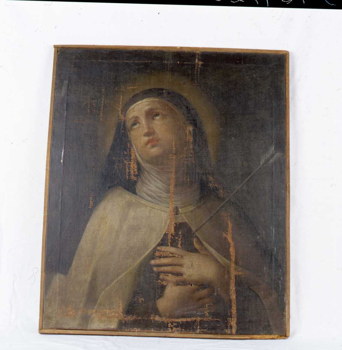 S. Teresa raffigurata a mezzo busto trafitta dalla freccia e con lo sguardo rivolto verso l'alto