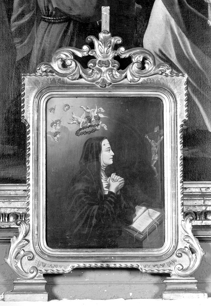- ISCRIZIONI retro - ADDI' 20 OTTOBRE 1897/ QUESTA IMMAGINE DELLA B. RITA DA CASCIA/ FU DI NUOVO ESPOSTA ALLA PUBBLICA VENERAZIONE CON NUOVA CORNICE DORATA E CRISTALLO PER GRAZIA/ RICEVUTA DALLA ANGIOLA BUSI AFFETTA DA GRAVE/ PNEUMO-PLEURITE, E SCAMPATA DA VICINA MORTE/ DURANTE UN DIVOTO TRIDUO NEI GIORNI 22, 23, 24,/ MAGGIO 1897 - corsivo - a penna -