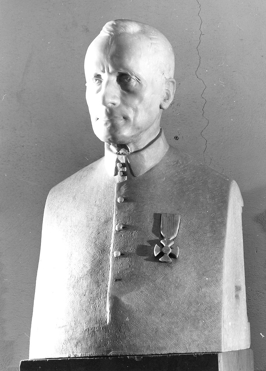 Figura tagliata a mezzo busto e resa con semplicità e compostezza. La testa fu probabilmente eseguita dal vero e la caratterizzazione dello sguardo è intensa. Sul busto spicca la croce di Cavaliere del Regno d'Italia