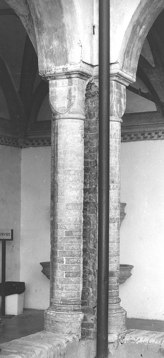 - NOTIZIE STORICO CRITICHE Al centro di ogni lato del chiostro, in corrispondenza dei ripsettivi passaggi, le colonne sono di mattoni con capitello a scudo e appaiono simili sebbene in proporzioni più piccole a quelle del lato orientale del Castello