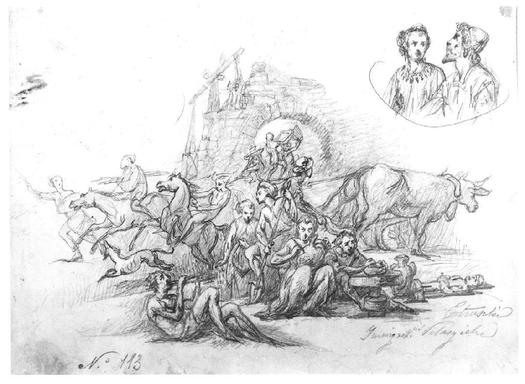 - ISCRIZIONI in basso a destra - Etruschi / immigrazioni letargiche - corsivo - a matita -
