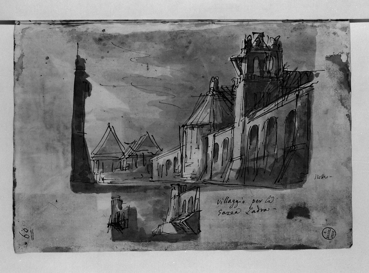villaggio per la Gazza Ladra; notte. architetture