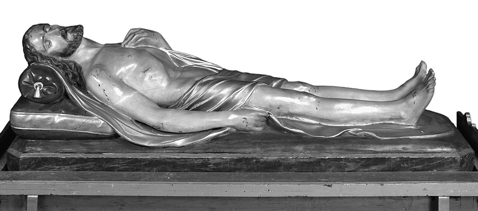 - NOTIZIE STORICO CRITICHE La cronaca della Visita pastorale effettuata del vescovo Conforti nel 1912 ci informa che a quella data era da poco stata realizzata sotto l'altare della Madonna Addolorata (seconda a sinistra) una nicchia destinata a contenere la statua del Criso morto che, tuttavia non è menzionata fra quelle allora presenti in chiesa. E' probabile che la sua realizzazione graviti attorno a quell'anno