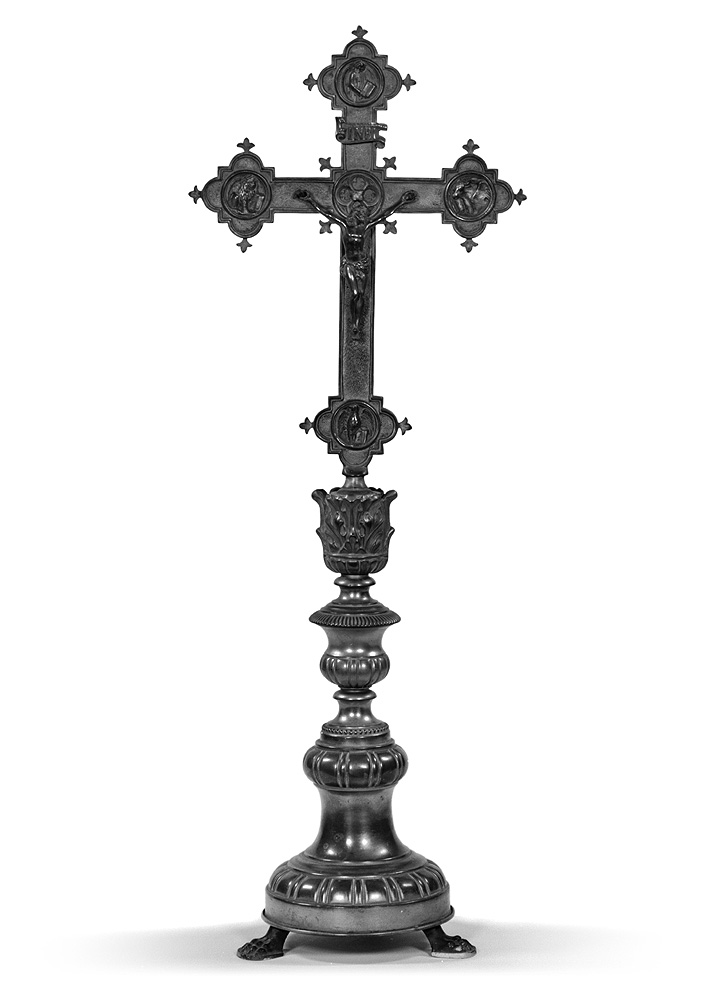- NOTIZIE STORICO CRITICHE La croce ripropone antichi modelli secondo il gusto medievalistico di fine '800 inizio '900, risultando peraltro precedente rispetto alla base, di produzione ormai industriale