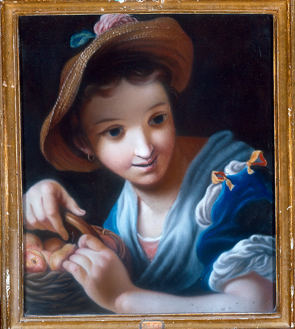 contadinella con cesta di frutta