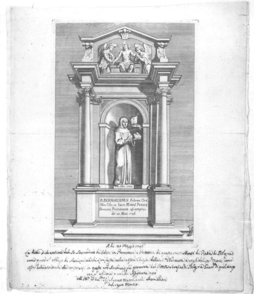Personaggi: Beato Bernardo da Feltre. Elementi architettonici: nicchia