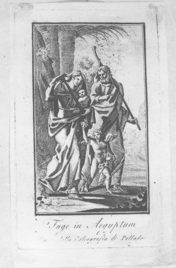 - ISCRIZIONI in basso - Fuge in Aegyptum/ [- - -] dalla Calcografia di Pallade - corsivo -