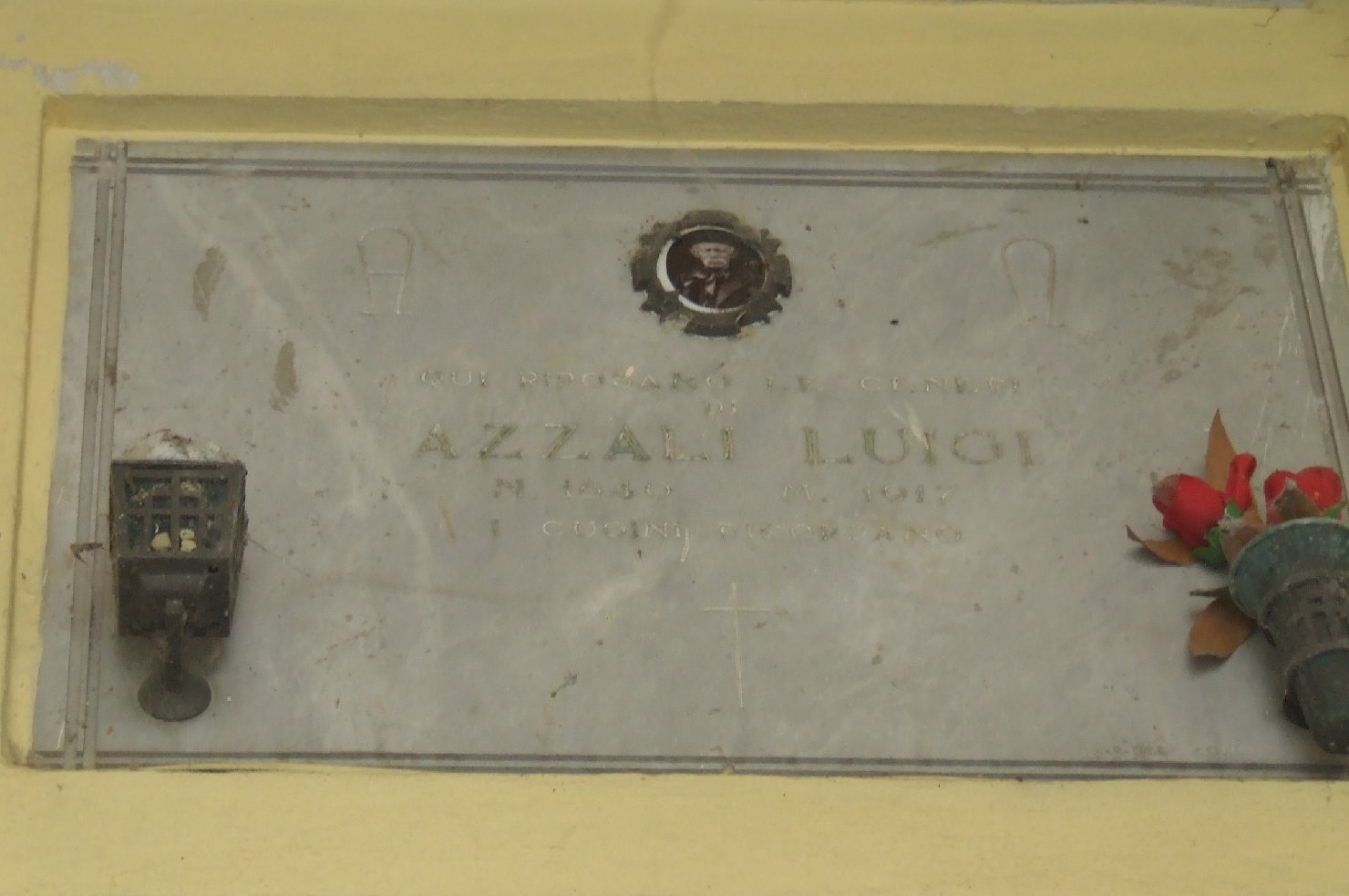 - ISCRIZIONI a tutto campo - QUI RIPOSANO LE CENERI/ AZZALI LUIGI/ N. 1840 M. 1917/ I CUGINI RICORDANO - a incisione -