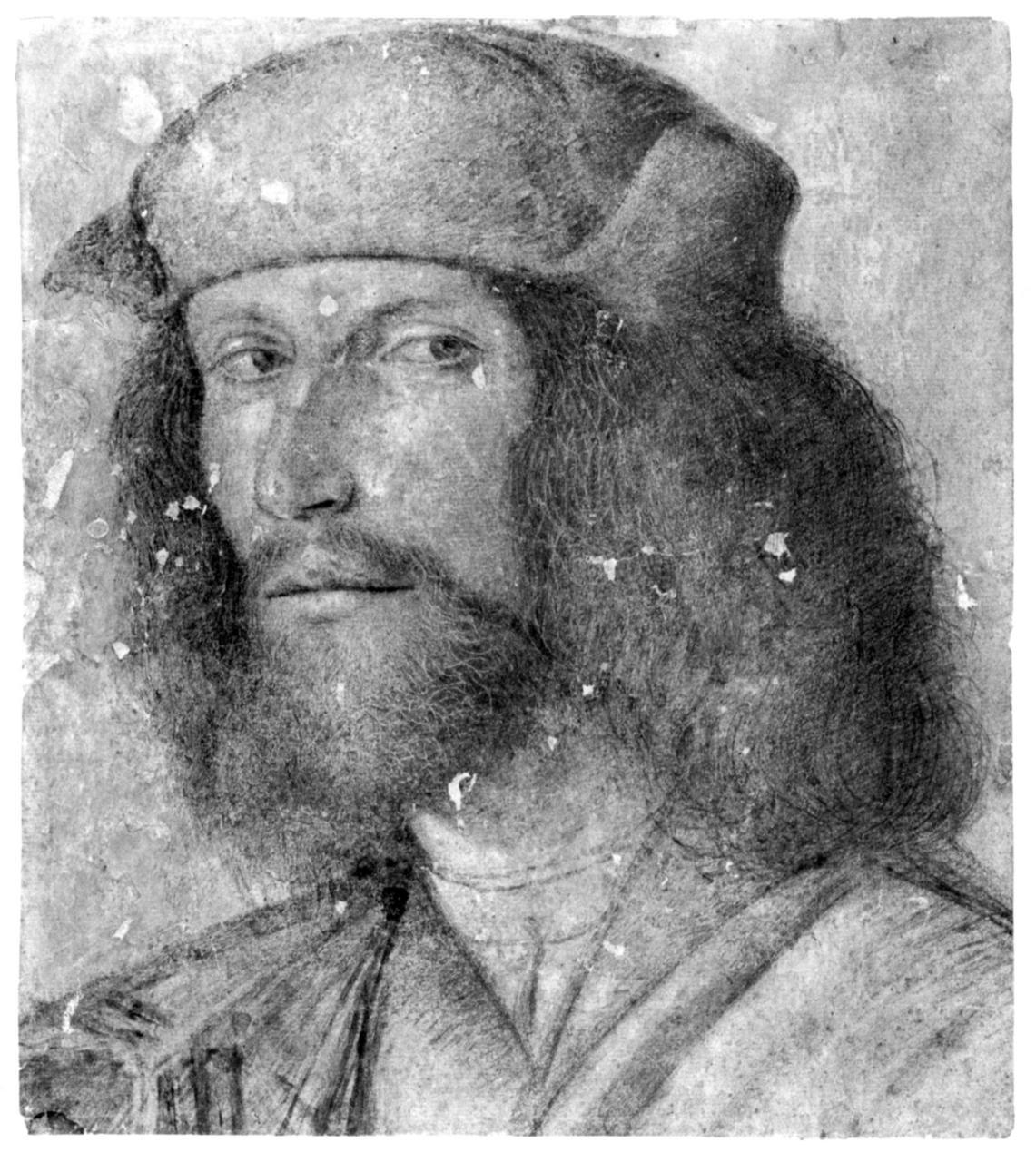 - NOTIZIE STORICO CRITICHE Si tratta di uno dei disegni più compessi ed affascinanti della collezione, recante una tradizionale attribuzione a Bartolomeo Veneto, e un supposto soggetto nel ritratto di Raffaello, o di Marcantonio Raimondi. Il foglio può effettivamente essere ricondotto all'area veneta, e si possono stabilire confronti con analoghe figure attribuite a Bartolomeo Veneto, come con un altro ritratto, meglio conservato, che si trova all'Albertina di Vienna (inv. 1452). Si riscontrano ancora tangenze con alcuni dipinti attribuiti a Bartolomeo Veneto, come il "gentiluomo con pugnale" (già New York, collezione Rutherford), e con un altro ritratto conservato presso il Detroit Institute of Arts (inv. 68.297). Alcuni aspetti morfologici e fisiognomici richiamano anche ai ritratti del Solario, artista per certi aspetti non distante da Bartolomeo Veneto. Manca sul foglio, infine, qualsiasi timbro o iscrizione che aiuti a risalire a una provenienza o a una antica collocazione