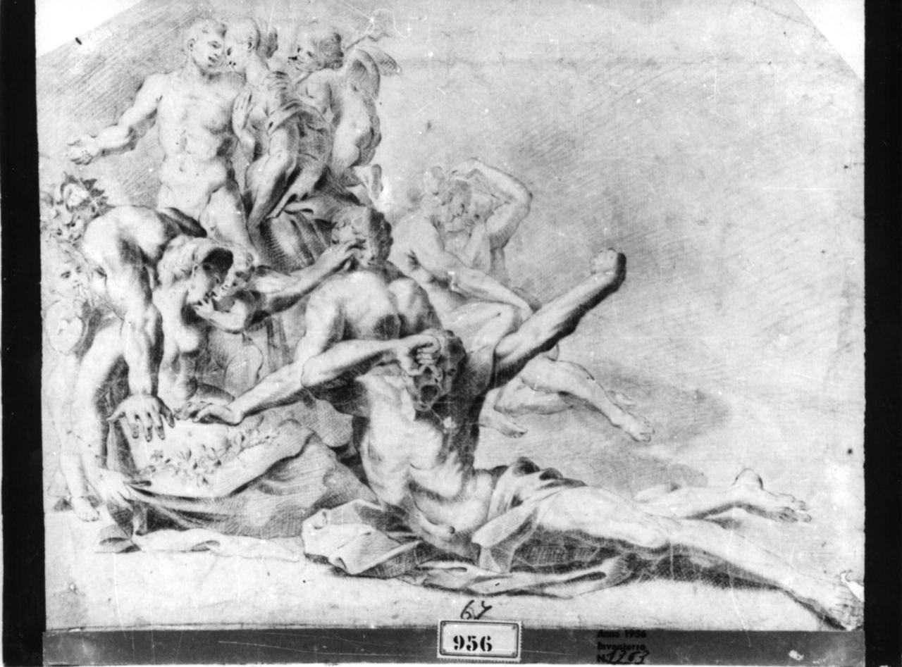 - NOTIZIE STORICO CRITICHE Attribuito a Boulanger da Castellani Tarabini (1854, n°67, p. 147), che lo ha individuato correttamente come "Sogno", il disegno è stato in seguito escluso dal catalogo delle opere di Boulanger da Pirondini , perchè "difficilmente conciliabile con il suo fare rapido ed immediato"(1969, p. 93). Il tema del "Sogno", tuttavia, è al centro di una delle stanze (la Camera dei sogni, appunto) affrescate da Boulanger nel Palazzo Ducale di Sassuolo almeno dal 1641; è lecito dunque supporre che l'autore del foglio possa essere rintracciato tra gli artisti attivi a Sassuolo al seguito di Boulanger, come ad esempio Olivier Dauphin, nipote e seguace di Boulanger