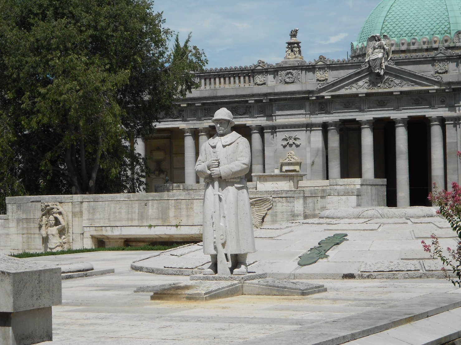 - NOTIZIE STORICO CRITICHE E’ costituito da un’architettura esterna in stile classico che accoglie i visitatori e da una parte sotterranea che custodisce l’ossario. L’idea di dare a Bologna un monumento dedicato ai Caduti della Grande Guerra e capace di raccoglierne le salme prese forma negli anni Venti. Nel 1932 fu approvato il progetto dell’architetto Filippo Buriani, dell’Ufficio Tecnico del Comune, che prevedeva la realizzazione di una grande struttura di ispirazione classica da collocare nel chiostro VI della Certosa, lo stesso luogo dove un anno prima era stato inaugurato il monumento ai martiri della rivoluzione fascista. La struttura fu portata a termine dal successore di Buriani, l’architetto Arturo Carpi. La parte esterna è caratterizzata da una superficie piana, sormontata da due cupole basse, decorate da bassorilievi bronzei dello scultore Mario Sarto. I rilievi mostrano simboli bellici accostati alle date MCMXV e MCMVXIII. Completano l’insieme le sculture di Ercole Drei, raffiguranti due sentinelle in marmo con i volti di un ragazzo e di un uomo poste a difesa del sacrario. Il monumento fu inaugurato il 4 novembre 1933, in occasione del 15° anniversario della Vittoria. Bibliografia: ASCBo, "Ufficio di Edilità ed arte. Edilizia privata. Verbali della commissione consultiva edilizia, anni 1922-1937", sedute del 24 gennaio 1930, 22 febbraio 1930, 16 maggio 1932; ASCBo, "Deliberazioni del Podestà. 1932/ 939-940"; ASCBo, "Carteggio amministrativo", anno 1932, cartella “Titolo VIII Cimitero, Rubrica 4 Monumenti e Tumuli”, "Carteggio amministrativo", anno 1933; A. Raule, "La Certosa di Bologna", Bologna 1961, pp. 157-158; E. Schiavina, "La Certosa di Bologna dal sec. XIX ad oggi", in “Strenna Storica Bolognese”, XXXIV, 1984, p. 349; G. Bernabei (a cura di), "Le meraviglie di Bologna. 6. La Certosa", Bologna 1993, pp. 103, 107; G. Gresleri, "Architetti moderni alla Certosa. Mille solitudini profonde", in G. Pesci (a cura di), "La Certosa di Bologna. Immortalità della memoria", Bologna 1998, p. 309; C. Rocchetta, "L'architettura monumentale del cimitero della Certosa. Il lessico", in G. Pesci (a cura di), "La Certosa di Bologna. Immortalità della memoria", Bologna 1998, p. 168; M. C. Liguori, "Realtà virtuale e memoria: il Monumento ossario ai caduti della Prima guerra mondiale e il progetto del Museo virtuale della Certosa di Bologna", in "Bollettino del museo del Risorgimento", 50 (2005), pp. 131-145; "Bologna in camicia nera. Le cerimonie, le adunanze e le celebrazioni del ventennio sotto le Due Torri", Pendragon, Bologna 2006, p. 12; G. M. Vidor, "La piazza, la chiesa, il cimitero: luoghi pubblici e lutti privati dopo la Grande Guerra", in: «Memorie della Grande Guerra. Le tombe dei caduti nel cimitero monumentale della Certosa di Bologna», a cura di M. Cavalli, Minerva Edizioni, Bologna 2007, pp. 35-45; A. Bozzano e M. Cavalli, "Le tombe dei caduti", in: «Memorie della Grande Guerra. Le tombe dei caduti nel cimitero monumentale della Certosa di Bologna», a cura di M. Cavalli, Minerva Edizioni, Bo-logna 2007, scheda n. 25, pp. 116-119; M. Gavelli, "Il Monumento Ossario ai caduti della Grande Guerra", in: «La Certosa di Bologna. Un libro aperto sulla Storia», a cura di R. Martorelli, Tipografia Moderna Bologna, 2009, pp. 232-233; R. Martorelli (a cura di), "La Certosa di Bologna. Un libro aperto sulla storia", Bologna 2009, pp. 232-233. Sitografia: www.rileggiamolagrandeguerra.org/; http://www.bibliotecasalaborsa.it/cronologia/bologna/1933/917#top; http://www.emiliaromagna.beniculturali.it/index.php?it/108/ricerca-itinerari/46/657