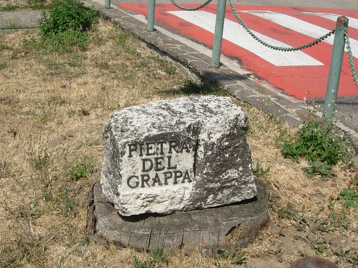 Il monumento è costituito da una stele in pietra grezza del Grappa, come ricorda una iscrizione posta su una seconda piccola pietra appoggiata in basso. Reca un rilievo con un ramoscello d’alloro e l’iscrizione in bronzo. La stele poggia su un tronco di piramide rivestito da lastre di ardesia