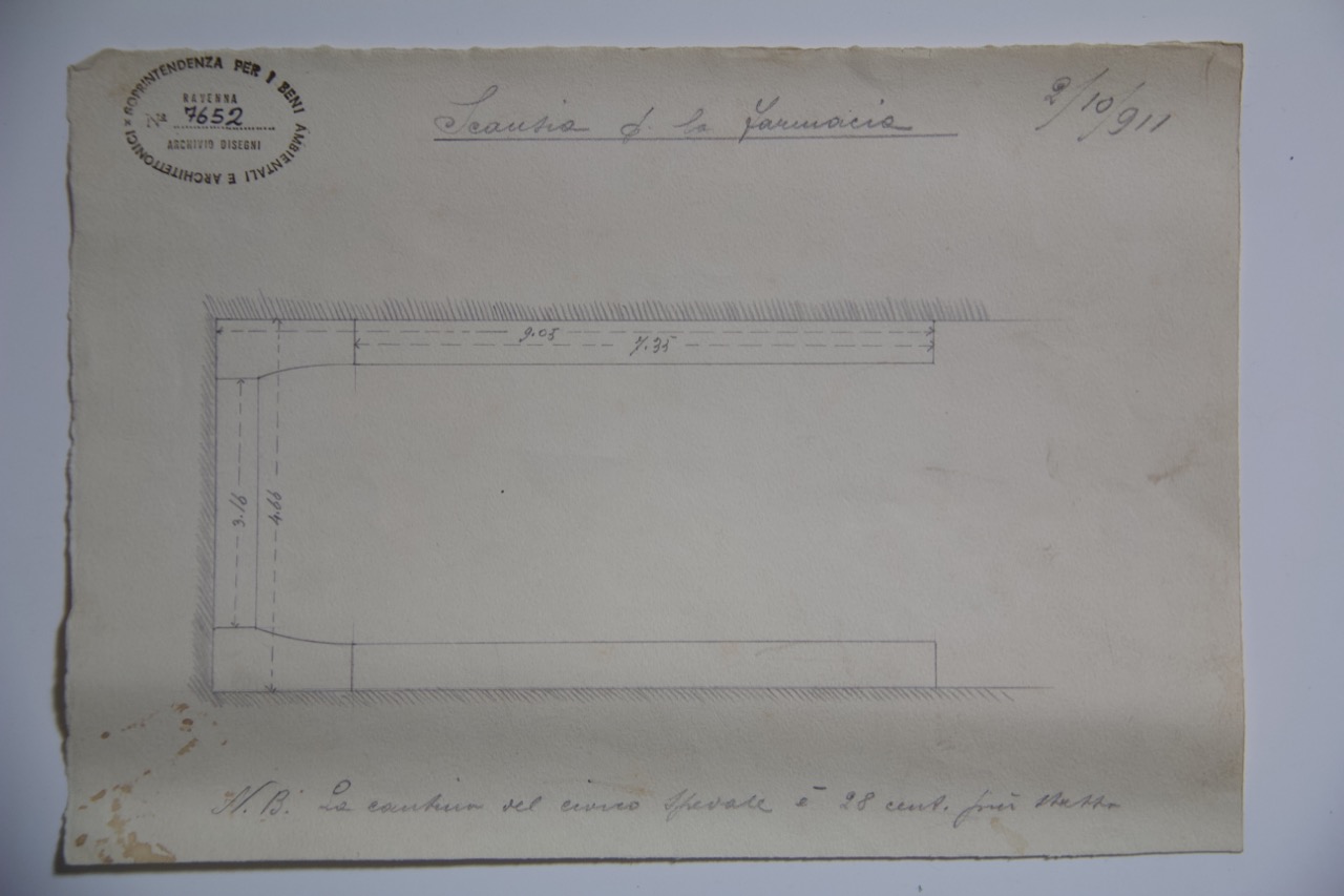 Disegno a matita su carta. Rilievo in pianta, scansia della farmacia della basilica di San Giovanni Evangelista di Ravenna