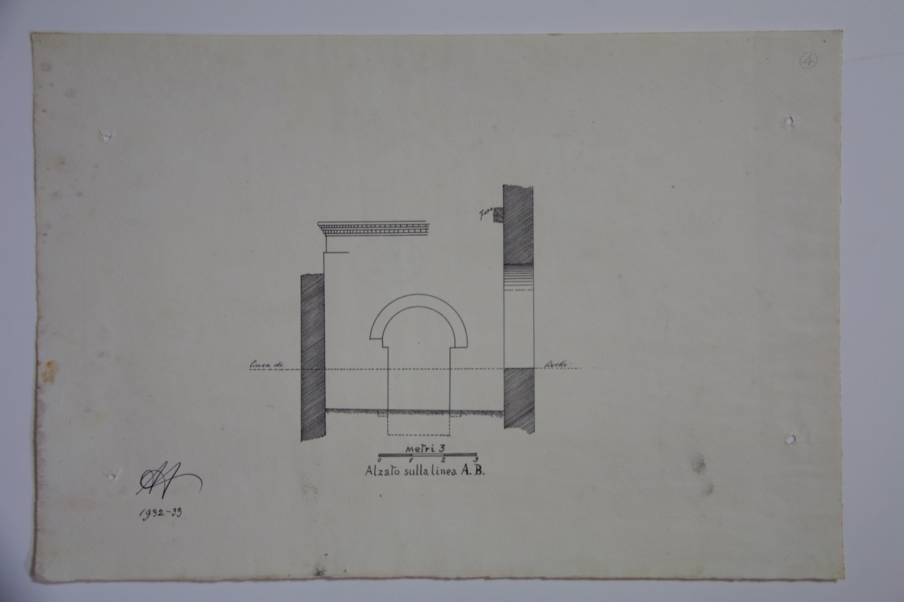 Disegno a inchiostro di china su carta. Linea di livello del matroneo sulla A-B della basilica di San Vitale di Ravenna