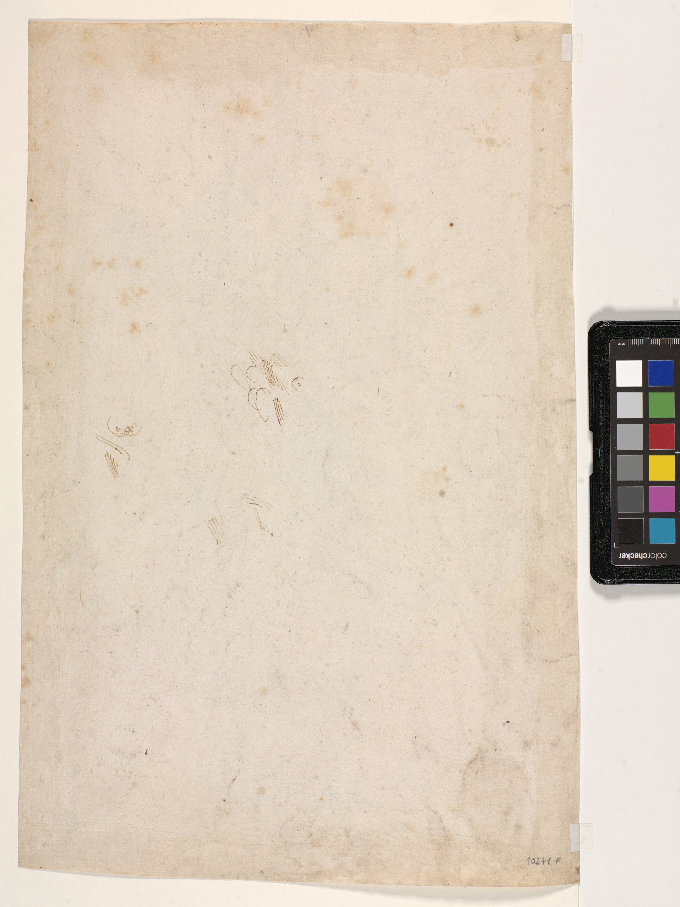 - NOTIZIE STORICO CRITICHE Il foglio è attribuito all'Allori nell'inventario del GDS degli Ufffizi. Si tratta però di un'opera a mio parere non sicuramente riferibile al pittore, come si vede dal controfondo, con altri fogli come per es. i nn. 10212 F e 10215 F, dove è presente un diverso studio dei panneggi e delle mani