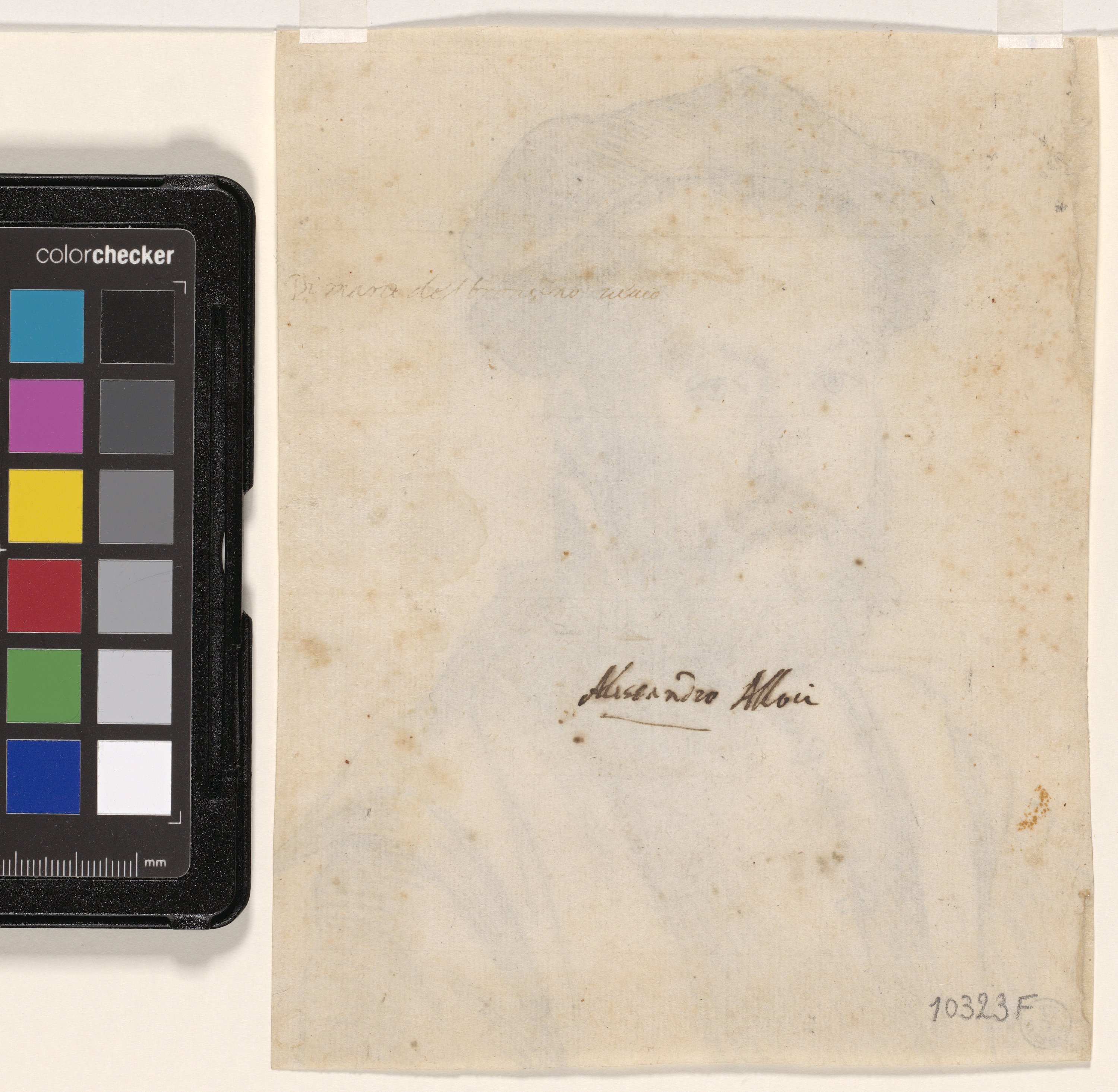 - NOTIZIE STORICO CRITICHE Il disegno è attribuito all'Allori nell'inventario degli Uffizi. Si tratta però di un foglio non sicuramente riferibile al pittore, come dimostra un confronto con altri disegni per esempio il n. 10327 F che presenta una maggiore qualità e una maggiore penetrazione psicologica