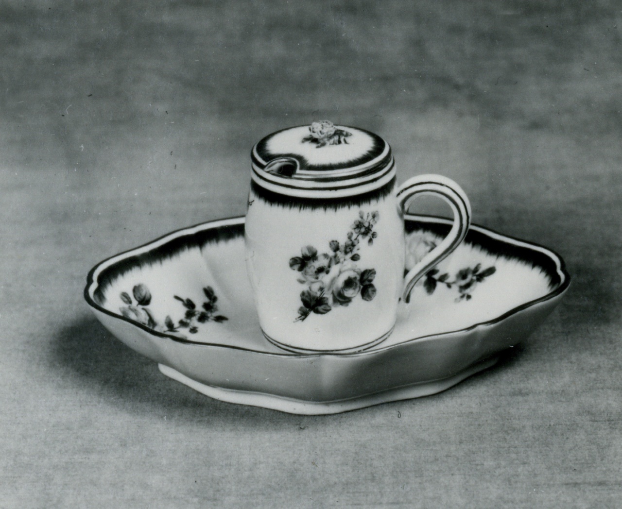 - NOTIZIE STORICO CRITICHE Per notizie storiche vedi inventario n. 845-7. L'inventario AcE, 1911, cita: ('2 vassoi' e '3 vasetti). L'inventario Argenti e Vasellami, 1879, nn. 2012-3, cita: (4 mostardiere', vedi inv. n. 831). L'inventario Frutteria, 1878, n. 2131 ('2 vassoi'); e 2132 ('4 mostardiere'). L'inventario Frutteria, 1878, n. 2131 ('2 vassoi'); e 2132 ('4 mostardiere'). L'inventario Porcellane da tavola, 1866, n. 745, cita: ('2 vassoi ovali') e 746 cita: ('2 mostardiere' pervenute dalla Villa di San Michele in Bosco presso Bologna il 13.12.1870); il 1023 cita: ('2 mostardiere' provenienti dal Guardamobili il 16.3.1877, vedi inv. n. 831). L'inventario Mobili Palazzo Pitti, 1863, n. 14397 cita: ('2 mostardiere, pervenute da Sala Baganza il 30.8.1868 vedi inv. n. 831)