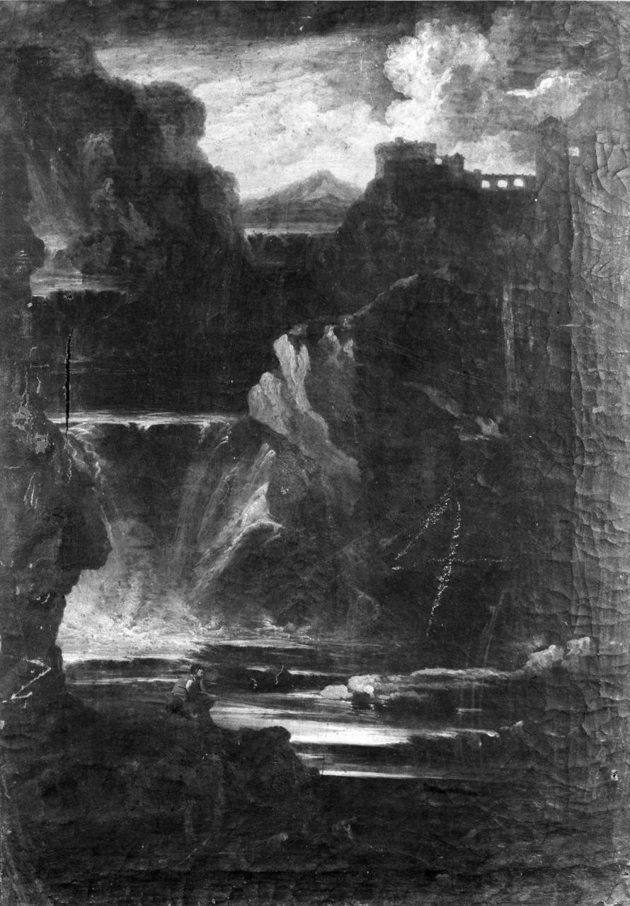 - NOTIZIE STORICO CRITICHE Inventariata nel 1890 come opera del Caravaggio per un errore di trascrizione dall'Inventario precedente (1881), la tela sembra discendere dalla concezione tenebrosa e di vena sentimentale preromantica espressa dai paesaggi dipinti da Salvator Rosa. L'opera in particolare ricorda la tela con la "Grotta con cascata d'acqua" della Galleria Palatina di Firenze. Il 20 maggio 1774, come si legge nell'Inventario del 1890, la tela si trovava nella Guardaroba di Pitti