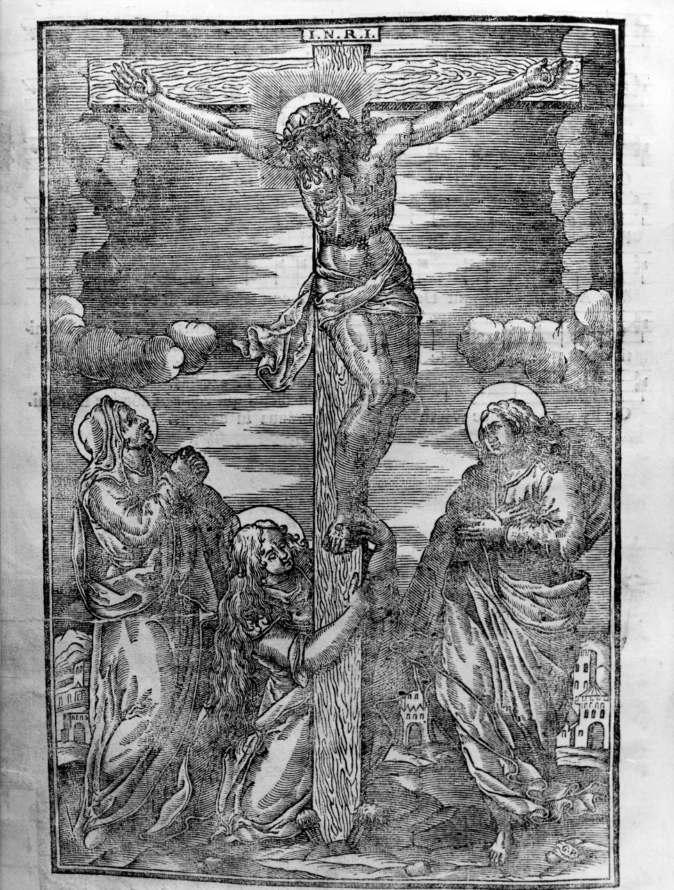 - NOTIZIE STORICO CRITICHE In questa incisione a piena pagina l'autore ha realizzato una composizione profondamente sentita e perfettamente equilibrata sia nella disposizione reciproca dei tre personaggi intorno alla croce che nell'impianto costruttivo di ogni singola figura