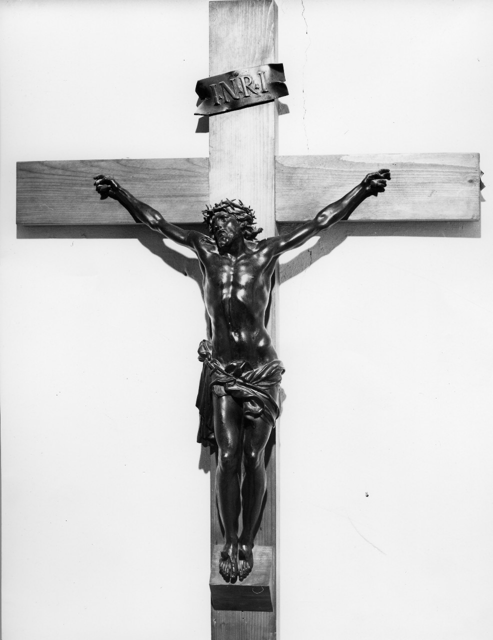 - NOTIZIE STORICO CRITICHE Questo crocifisso - anticamente attribuito al Giambologna - è attribuito da Lankheit a Massimiliano Soldani Benzi, bronzista fiorentino, allievo a Roma di Ciro Ferri e di Ercole Ferrata. L'attribuzione è giustificata per il Lankheit da evidenti affinità tra questo crocifisso ed altri due crocifissi documentati dell'artistia