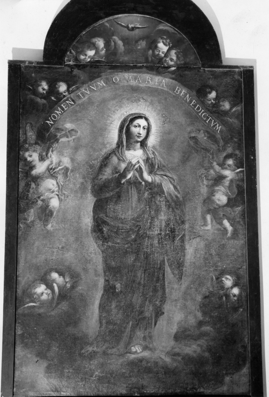 - ISCRIZIONI nel cartiglio - NOMEN TUUM O MARIA BENEDICTUM - lettere capitali -
