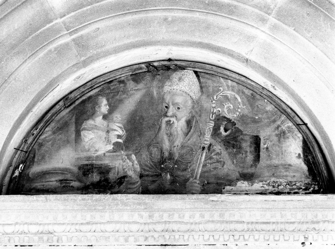 - NOTIZIE STORICO CRITICHE Il dipinto, opera di un ignoto toscano del XVIII secolo, risulta di fattura molto mediocre nella composizione, nei particolari delle mani, del pastorale, del piviale e del volto del santo. La figura della donna, che sembra quasi seicentesca, appare di qualità superiore. La scena, come si deriva dal Brocchi, si riferisce ad un miracolo operato da sant'Eufrosino, che resuscitò un bambino. Lo stesso avvenimento è presente nella predella del polittico di Mariotto di nardo (1421), proveniente dall'Oratorio di S. Eufrosino. La provenienza dallo stesso luogo si può ipotizzare anche per questa tela, che non si adatta perfettamente alla lunetta, risultando abbastanza curiosa l'attuale ubicazione nell'ingresso di una pieve dedicata ad un altro santo